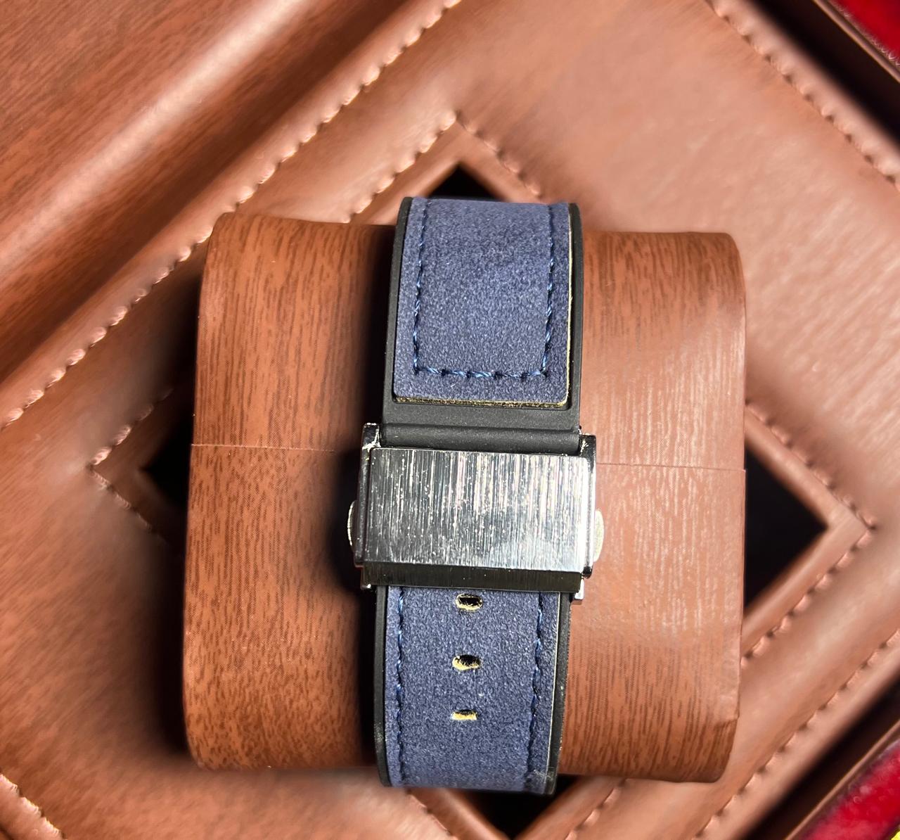 The HUBLOT “Azure Engine” Edition is a striking fusion of kinetic artistry and bold design. With its skeletonized dial, blue accents, and exposed gearwork, this timepiece is crafted for those who appreciate the pulse of precision and the power of visual engineering. It’s not just a watch — it’s a mechanical statement.